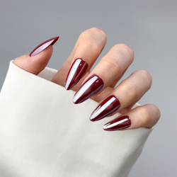 Aierfei เล็บเจลโครเมี่ยมอัลมอนด์พิ้งกี้ยาวแบบสั่งทำเล็บอะคริลิคเล็บปลอมแบบเต็มรูปแบบ